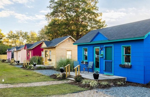 Come and enjoy this one-of-a-kind experience at Cape Charles Tiny Livin'. Celebrate your Wedding Day, host a Company Retreat, or a family reunion outside in the gorgeous Tiny Home back drop. There are 7 tiny homes sleeping 16 guests while the full venue space can accommodate up to 50 people total. Utilize the whimsical greenhouse as an altar, gather around the fire pit, BBQ some food or cater food in & have the whole place to yourself!