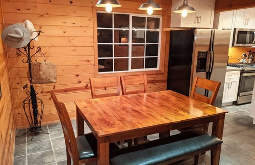 The property's prime location allows you to explore the nearby Snow Valley Mountain Resort, just a 22-minute drive away, where you can hit the slopes or enjoy a day of winter activities. Back at the home, you'll find a fully stocked kitchen, perfect for whipping up delectable meals, and a dining area to savor them together.