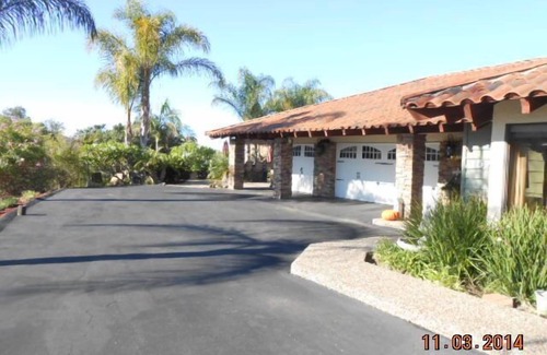 30 day rental required. The sun really shines almost everyday on the top of the hill. Located just 5 miles from the I-15 freeway; a short drive up a country road to the top of the mountain to get away from the city noise. Centrally located to all San Diego has to offer, beaches, the World famous Zoo, Legoland, even Disneyland is only 1 1/2 hours away. Safari Park is a 15 minute drive. This is horse and wine country as the avocado groves disappear and vineyards are sprouting everywhere. There is a nearby Cordiano winery that serves authentic Italian food. The home is 4 bedroom 5 bath and sleeps 8 adults, 10 provided 2 of the 10 are children. Over 4000 square feet of comfort and entertainment. Every extra large bedroom has it's own private bath, and one extra! Our waterfall spool (small pool) overlooks the valley and has a nice large BBQ/Bar area with sun room and TV. Inside is a pool table and 65 ' wide screen TV. The kitchen is extra large with stove/oven microwave refrigerator and warming drawer. The table that seats 12 and a breakfast bar for casual dining. All bedrooms have queen beds, private baths, entrances and a view. There is a separate guest bath and also a separate laundry room. The grounds are lovely and the setting is peaceful for your relaxing family vacation. Our rates are cheaper than 2 hotel rooms, your family will be very comfortable with many amenities not available at hotels or many resorts. 7 night minimum stay. YES, we have added a full size PICKLEBALL COURT! venmo or messenger Shannon Fitzmaurice-one for pricing and direct contact. John and Shannon Fitzmaurice. Sorry no smoking or furry friends.