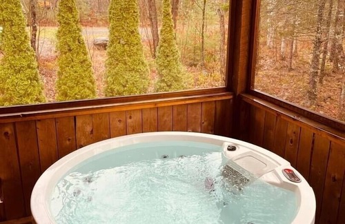 Falls Lake Burrow - Private Cottage with Screened-in Hot Tub is located in Smiths Corner. Falls Lake Burrow - Private Cottage with Screened-in Hot Tub provides accommodation, featuring Wellness Facilities, Fireplace/Heating, Entertainment, among other amenities. This Cottage features Wellness Facilities, Fireplace/Heating, Entertainment, to make your stay a comfortable one.