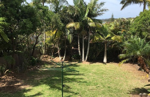 Our refurbished beach house has 3 bedrooms - two with queen beds and one with double and single bunks. The living and dining areas lead onto a large covered deck with bbq overlooking a huge backyard and tropical garden with plenty of room for kids and dogs to run around. Downstairs is a second shower and toilet and plenty of storage for bikes, surfboards, fishing gear and golf clubs. Bring the family pet to enjoy meeting new friends at leash free Nobby's Beach.