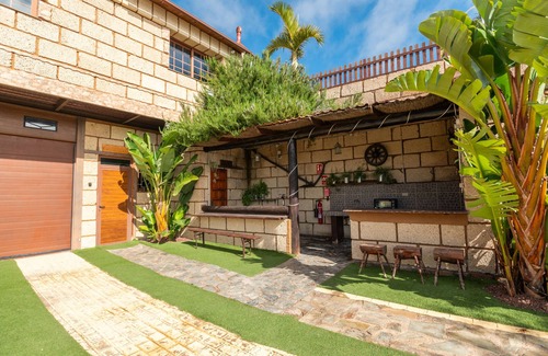 Family Cave invites you to an unforgettable stay, combining tradition with modern luxury. With 60 m², this house in Arico has 3 bedrooms and capacity for 6 people, perfect for enjoying with family. Its spacious living-dining room and fully equipped dream kitchen are the heart of this home. Dark stone walls and modern furniture create a cosy and exclusive atmosphere.