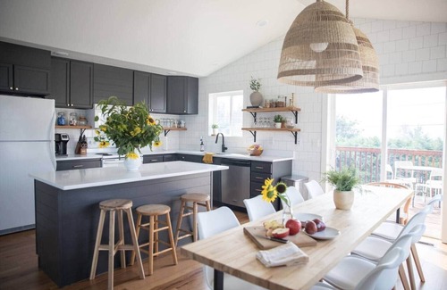 - Main Space: We wanted to go with a “fun super cool grandpa moves to Wenatchee” kinda vibe. Functional great room design that promotes togetherness. Dining table seats 10, island has another 4 stools. Kitchen is stocked with most normal cooking tools perfect for making meals. There is a grill on the deck easily accessible from the kitchen. Deck with Views: Start your day with a cup of coffee or unwind with an evening cocktail on the deck off the kitchen. Take in lovely sunset views of the foothills mountains and Columbia River. In warmer seasons, enjoy the sounds of the nearby canal and explore the Canal trails.