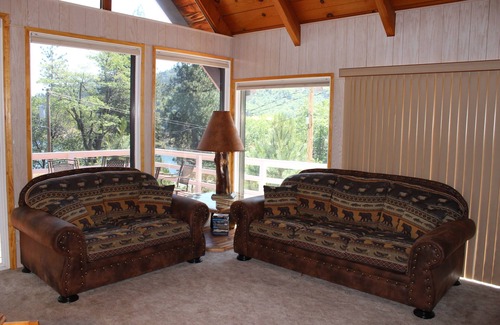 There is room for everybody to get a good nights rest with sleeping for 12 that includes 2 Cal Kings, and four queens. There are 3 bedrooms, 3 full bathrooms, 2 carports and the game room. Give those that aren't ready to sit down, something to do here on their own floor entirely devoted to playing. Pool table, dart board, board games and a wall mounted flat screen for electronic gamers. A beautiful natural stone hearth hosts a "smart" big screen in the main living area. Pay Per View, movies from our broad DVD library, ROKU TV for your own subscription channels and free Netflix. Resorts, market and eating establishments only a few minutes from the house. Come stay at one of the few rental homes available this close to Lake Shasta.