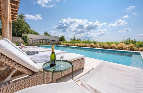 In the quiet hamlet of Radovani, not far from Višnjan, you will find the unique Villa Charlotta. This old Istrian farmhouse has been renovated with a combination of old and new, skilfully incorporating traditional Istrian elements into luxurious interiors. The complex consists of 3 independent residential units and a pool house with 7 bedrooms and 7 bathrooms for 13 people, and pets are also welcome. Villa Charlotta will take you to a new level of relaxation with a dreamy garden with several courtyards and a swimming pool, complete privacy amidst Mediterranean greenery and concierge services including freshly-made breakfast and villa maintenance.The main house welcomes you with a combination of stone, wood and minimalist modern furnishings, as do the other accommodation units. Bright colours dominate all rooms, creating a relaxing atmosphere with the views of greenery from the windows. Underfloor heating runs through all the rooms, adding to the overall sense of comfort. A fully fitted modern kitchen with induction hob and a bright dining area is located on the ground floor. There is also a guest bathroom on the ground floor. On the first floor there are two living rooms - one with French doors leading directly to the sea view terrace and the other with a modern fireplace for entertaining. The main house accommodates 7 guests and offers 3 elegant double bedrooms with ensuite bathrooms and 1 single bedroom. The modern bathrooms are equipped with toiletries and hairdryers.The first guest house consists of a ground floor and an upper floor and is designed to accommodate 4 people. On the ground floor you will find an open-plan living area with a modern and fully equipped kitchen, a dining table for enjoying Mediterranean specialities and a comfortable living room with direct access to the terrace. There is also a small toilet on the ground floor, and on the first floor there are two double bedrooms with ensuite bathrooms, fully equipped with toiletries and hairdryers. The second guesthouse is a charming rustic one-storey house for 2 people. There is a double bedroom, a fully equipped kitchen and a bathroom with two sinks.Situated on a spacious 2,000m² plot, Villa Charlotta has an enchanting garden and courtyard divided into several zones for relaxation, socialising and sunbathing. The 80m² swimming pool is accessed by stairs and is ideal for refreshment and relaxation. The pool house has a small lounge with sofa, wardrobe and toilet. It has direct access to the pool and on the outside of the house there is an outdoor shower and a fridge to keep your drinks cool. You can enjoy a refreshing drink in one of the deckchairs by the pool or in the shade of the covered part of the garden, all overlooking the Mediterranean landscape. If you would like to prepare a meal in the aromatic air, you can do so on the large covered terrace in the summer kitchen with barbecue and seating for al fresco dining. While you are enjoying the company of family or friends, the children can have fun in the children's playground.To make staying at the luxurious Villa Charlotte even more enjoyable, the Villa offers its guests a concierge service. Every day from 8 am to noon, hostesses are available to prepare breakfast, make the beds, and clean the bathroom and kitchen. You can even hire a yacht for a memorable outing. If you prefer to go ashore, explore the thousand-year-old town of Višnjan, just a short distance from the villa. Walk along the cobbled streets to the 15th-century Gothic church of St Anthony, visit the town gates and the old town square. A unique attraction is the small but world-renowned Višnjan Observatory, which has been at the forefront of asteroid discovery for years. The city of Poreč, full of cultural and historical gems, is only a twenty-minute drive away. For an incredible view of the blue sea, head to the viewpoint overlooking the Lim Channel.