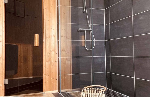 The house has two bedrooms each with a double bed and a wellness room with sauna and solarium.