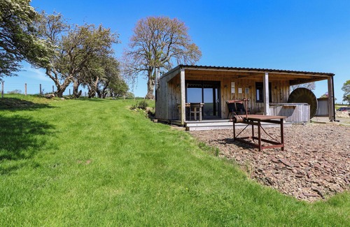 Fenlli consists of an open-plan living space with an electric oven and hob, fridge, kettle, toaster, a dining space, and sitting area with TV, plus a sofa bed sleeping two additional guests. There is a double bedroom with TV, serviced by an en-suite shower room. Outside there is a non-enclosed covered decking with furniture and hot tub, plus off-road parking for one car. Within 0.3 miles or less you will find a shop and a pub, and please note this is a smoke-free and pet-free property. Highchair available. WiFi, fuel, power, bed linen, and towels included in the rent. Make a romantic retreat to Flintshire with a stay at Fenlli. Note: This property does not accept children. Note: On a working farm.