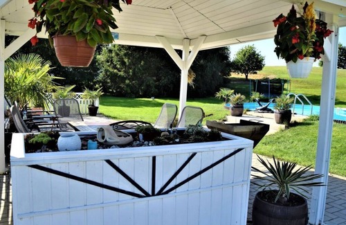 4-star holiday home, outdoor whirlpool (Jacuzzi), swimming pool 8.00x5.50 m, terrace, enclosed lawn, HDTV, Wi-Fi, dishwasher, grill, free parking, trampoline