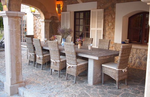 This charming old family home set amidst the fabulous backdrop of the Tramuntana mountains is located just outsied the lovely village of Soller. The original stone house dates back over 500 years. With the citrus orchard enclosing a stone courtyard with comfortable seating for 10, a beautiful swimming pool and its own tennis court all with stunning views, it is easy to forget about the rest of the world. All bedrooms are decorated in style and comfort ranging from one twin, to en-suite doubles, to a full suite with its own private terrace. There is a comfortable study and a beautfiul covered outdoor dining area.