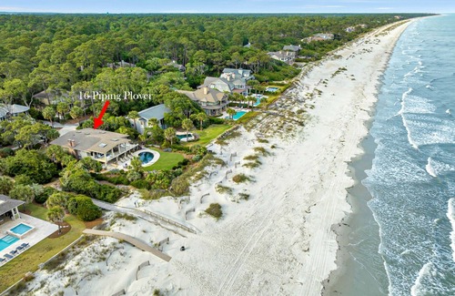 Welcome to 16 Piping Plover! This five bedroom, four bathroom home is located direct oceanfront in Sea Pines and can sleep a group of up to twelve guests.