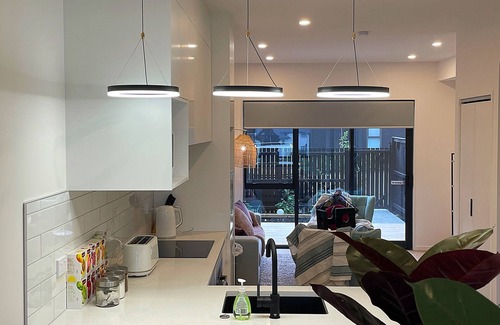 A stylish and contemporary apartment-style dwelling situated in the charming new suburb of Ormiston (Flatbush), East Auckland. Offering a captivating vista of the surrounding walkway and suburb, this residence boasts three bedrooms with ample storage, spread across both the ground and top floors. The central level hosts the inviting living area, comprising a dining space, kitchen, and lounge, seamlessly flowing out to a rear deck. With three fully tiled bathrooms, each serving as an ensuite with showers, along with an additional common toilet, convenience and comfort abound. With over 60 sqm of space, a fully equipped kitchen with all the mod cons, plus it is only 3 months old , making this, the perfect place to stay. When you book the full residence you have the whole residence exclusively to yourself. Only 6 mins to the new Ormiston Town Centre (2 supermarkets) 15mins to the Famous Botany Town Shopping Centre ( 200 stores) and 15 mins to Westifeld Manukau Shopping Centre, Bus and Train stations. Its close to the airport being a 20min drive.