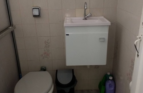 Located in Praia Grande, Kitnet with 31m, cozy space facing the sea. It offers accommodation with bunk beds, sofa bed, flat-screen TV with open channels and ceiling fan.
