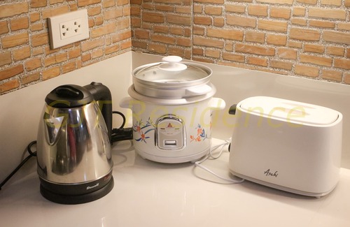 A Smart TV is installed with a cable connection and Netflix for entertainment. It has a 2-seater sofa-bed, and WiFi is also available. In the bedroom, a queen-sized bed with a wardrobe. The kitchen is equipped with cooking utensils dining ware and split type aircon. Guests can take a refreshing shower whenever they want and can choose between hot and cold. It has a coffee maker and a water dispenser for hot and cold.