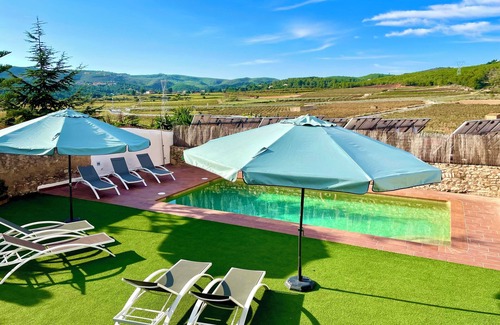 MASIA LAGOSTEA - This is the holiday home that you can only dream of – situated in the middle of a vineyard – with just 10 km. to the beaches in Costa Daurada and within walking distance to the nearest village. This exceptional villa offers and a magnificent swimming pool area with a covered chill out area with really comfortable sunbeds, Jacuzzi, Sauna, and a game hall with billiard and table tennis. The courtyard has a BBQ zone and here is also an entrance to a covered dining area in ground level. The view over the vineyard is excellent and the 500m2 holiday home Masia Lagostea has been decorated with a fantastic sense of its history! The house sleeps 13+4 guests.