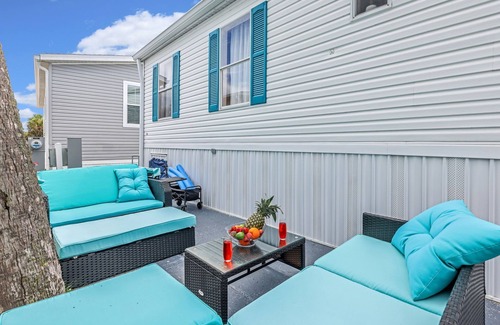 This unique place has a beach style all its own. Fort Myers Beach is 3.5 miles away. Bunche Beach less than 2 miles away and the Sanibel Lighthouse 8 miles away. The house sleeps four. On site we have Two Pools, Hot Tub, Corn hole, (bean bags provided) Tennis, Pickle ball, Shuffle Board, Bocce Ball, Horseshoes, Chipping/Drive Net, Boat washing station. The home includes beach towels, beach chairs, pool noodles, patio furniture and a cooler. At least one renter must be 35 years old. One bedroom has a queen bed with an attached bathroom. One bedroom has a double bed. Full size washer and dryer in unit. Coffee pot, blender, toaster, hair dryer, iron and ironing board included. Rent the entire house, no cameras anywhere. Must agree to Sun Resort rules and regulations. Check in with office to get parking pass and amenities card.