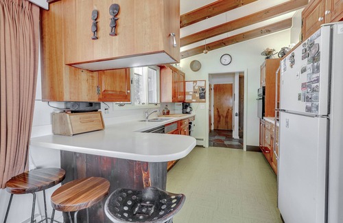 Gorgeously detailed with wooden beam ceilings and classic artwork, this Albany furnished rental is a joy to spend time in. It easily sleeps four to seven people, depending on whether the last bedroom is used as an office or not. The living area has a television, comfortable seating options, and huge windows to look out at nature. With so much to enjoy and the privacy to get away from the world, this is a great choice for anyone who needs to spend time near Albany.