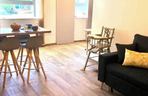 A fee of 5€ per pet is required. The accommodation also offers a bike storage area, a fenced outdoor dining space, and a barbecue for an even more enjoyable stay.