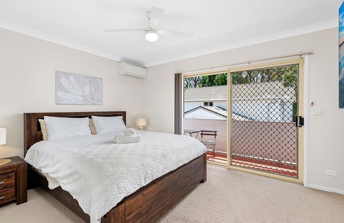 Bedroom 1: King, Television, Balcony Access, Built-In Robe, Private Balcony, Ceiling Fan
