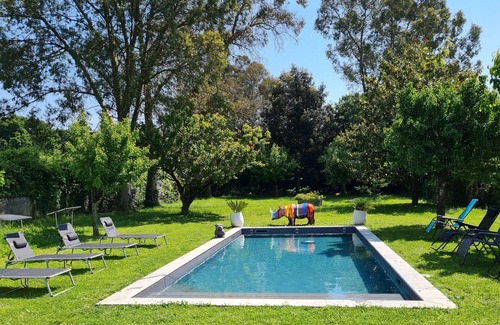 Renovated house on a plot of 3000m² with swimming pool, located 34km from the Vendée coast. The cottage is composed on the ground floor of a living room/kitchen, a bedroom (1 bed 160) with a private open bathroom, a separate toilet and laundry area (washing machine and dryer). Upstairs: a large mezzanine with a 140 cm sofa bed, 1 bedroom with 1 bunk bed (2 90 cm beds) and 1 90 cm bed, a bedroom with 2 twin 90 cm beds and a shower room with WC. Wireless. Outside: a heated swimming pool (from May 1 to September 30) shared with the owners (5 X 11), deckchairs, garden furniture, offset parasols, barbecue, bowling green. Opening of the gîte from June 15 to September 15. Electric heating in the bathrooms. Optional services to be paid on site and to be reserved before your arrival: - End of stay cleaning: 159.57€ per stay - Towels: 8.51€ per person per stay - Sheets: 10.64€ per stay - Sheet for small bed: 10.64€ per stay Unless stated, services such as cleaning, bed linen, towels etc. are not included in the price of this rental. If pets are allowed (information in the advertisement), charges may be applicable. Only equipment mentioned in this advertisement are present. Equipment not mentioned are not considered to be present.
