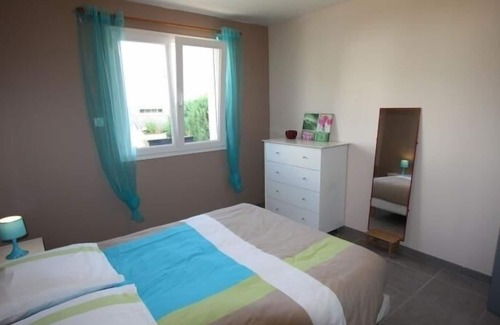 In the direction of the city center via the Graviers, after the leisure center. On the left a car garage, on the right a chalet. The gîte is on the left, at the end of a small path (2 houses).