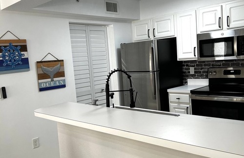 Condo is a modern beachy oasis! It is located steps away from Fort Myers most popular attractions including the historic Edison & Ford Winter Estates, Fort Myers River District/Downtown, and Fort Myers Beach.