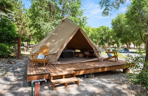 Glamping Comfort & Adventures at Smokiam RV Resort is located in Soap Lake. Glamping Comfort & Adventures at Smokiam RV Resort provides accommodation, featuring Air Conditioner, Balcony/Terrace, Security/Safety, among other amenities. This RV Rental features Air Conditioner, Balcony/Terrace, Security/Safety, to make your stay a comfortable one.