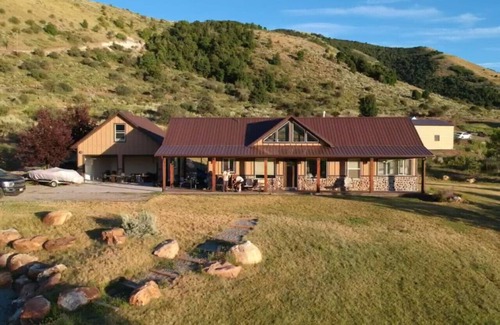 Nestled on 25+ acres of rural bliss in Preston, Idaho, this expansive retreat promises an unforgettable vacation experience. From the serene shores of Glendale Reservoir to nearby hiking trails, adventure awaits at every turn. Cellular service is spotty on the property.