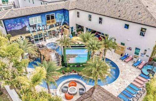 20 Bedrooms 25 Bedrooms every bedroom themed. This fantasy house is amazing. You never have to leave the house. Enjoy your stay for the full experience. Heated pool, multiple washers and dryers. Big Movie theater.