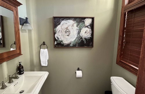 Outside enjoy the tranquility on the large beautiful deck as you listen to the sounds of nature and watch the wildlife. Set up a game of corn hole in the large yard perfect for running and playing. And at the end of the day gather around the fire-pit to re-cap your fun filled day, tell stories, and make more memories.