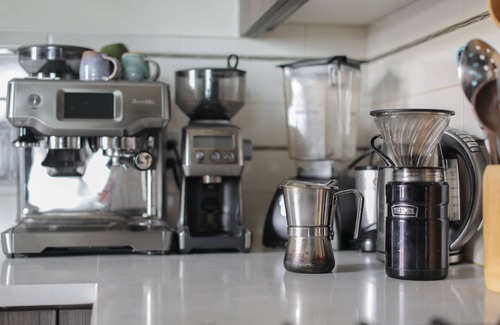 Kitchen is well-equipped for someone who loves to cook: new appliances, dish drying rack, soda stream, espresso maker, coffee paraphernalia, instapot, blender, great cookware, spices, etc.