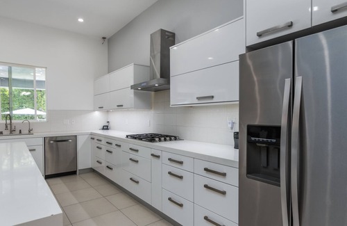Have fun with the whole family at this stylish place. The house has 5 bedrooms and 3.5 baths, heated pool and spa, office and two kitchens. You will be very happy to get gated house with full privacy in a quiet neighborhood and very close to all mail attractions LA has to offer.
