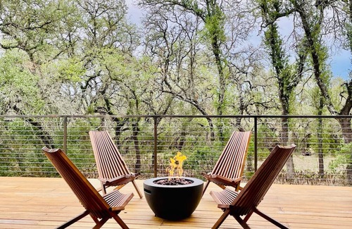 Welcome to Hawk`s Nest! Elevate your stay with a unique architectural space nestled under the starriest of ATX hill country skies. Hawk`s Nest is inspired by the graceful hawks that swoop and soar the skies before nesting atop the oaks that surround the space. This special spot delivers great natural light and epic stars for cool daytime dips in the plunge pool and unmatched stargazing around the firepit -- all on your private walkout deck. Welcome to bliss, y’all.