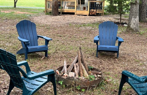 Located on the scenic Historic Oklahoma Waterway enjoy the sounds of nature when you stay in this unique grain bin that was built on site, using local timber in an effort to store the grain from the fields. Trees were cut down and milled to build this grain bin in the early 80's. Currently its a tiny home getaway, with a modern rustic interior, wrap around porch, and fire pit. Perfect for relaxing, hiking, kayaking, tubing, or fishing. Interesting thing about this property is the history. In the late 1830's the Hildebrand-Beck Mill was being built, right across the street from our property, along the creek. It was one of the oldest working mills in the U.S. During the civil war, federal troops occupied this land. After the war, in 1872 Ezekial Proctor accidentally shot Pauline Hildebrand and touched off a feud that resulted in an shootout at the Goingsnake Court House. The threads of the tapestry of history have woven in and out on this quiet setting on Flint Creek.