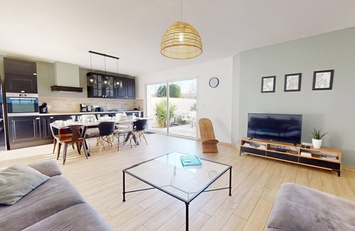 Our house offers 3 spacious bedrooms, a warm atmosphere and a careful decoration. Located in a quiet area and close to the sea, it is also only 2 km from the shops, the supermarket and restaurants such as \'Les Cabines\'.