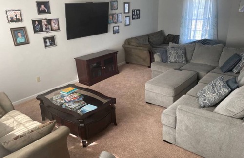 A newer house with a great view was built on the side of Mount Nittany. Each stay is professionally cleaned and sanitized by a local cleaning company. It is in a quiet suburban area with easy access to downtown, campus, and the mall. It is four minutes to I 99 and 322. The house has a Full Kitchen and two-car garage access. The only pet in the house is a cat, and the cat will be gone for a stay. Each bedroom has its own HDTV, 32 to 42 inches.