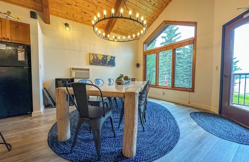 The cabin has 3 bedrooms and 2.5 bathrooms, including a spacious master suite on the main level. In addition to the two living areas, there's a full sized kitchen and a dining room area with room for the whole family to dine together. Unique artwork and carefully selected furnishings make this home warm and welcoming. The beautiful wall to wall windows allows you to take full advantage of the Devil Track Lake views year round.