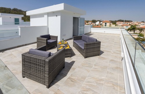 Enjoy sunny days by the private pool and peaceful evenings with a refreshing sea breeze—this villa is the perfect retreat for families looking to relax and make unforgettable memories together.These modern holiday villas combine the comfort of a home with the convenience of resort-style amenities. Just a short walk from the lively Protaras main strip and nestled between two of Cyprus' most famous beaches, Konnos Beach and Fig Tree Bay, the location is ideal for both relaxation and adventure.Inside, the villa is bright and spacious, thoughtfully furnished to ensure a comfortable stay for families. The open-plan ground floor features a cosy living area with plush sofas and a large flat-screen TV with international channels, perfect for movie nights. The fully equipped kitchen and dining area make family mealtimes easy, and large patio doors lead directly to the outdoor pool area. A guest toilet is also located on this floor.Upstairs, the villa offers three comfortable bedrooms. The master and second bedrooms each have a large double bed, blackout blinds, air conditioning, and plenty of storage space, while the third bedroom is perfect for children, featuring two single beds. Each bedroom has its own en-suite bathroom for added convenience.One of the villa’s highlights is the stunning rooftop terrace. With a spacious seating and dining area, it’s the perfect spot for family gatherings, sunset dinners, or simply enjoying the breathtaking sea views.With its peaceful setting, modern comforts, and easy access to beaches, restaurants, and family-friendly attractions, Green Bay Villas are ideal for a fun and relaxing holiday.Age requirements: Young groups under the age of 25 are not accepted.