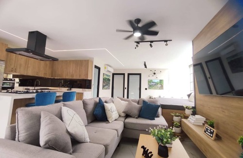 Welcome to this charming apartment in El Valle de Antón! Ideal for 4 people, in 50 m² you will find two comfortable rooms with King size beds and a fully equipped kitchen. Relax in the living room with its beautiful views and an exclusive jacuzzi. You will have access to a beautiful shared pool and can enjoy free bicycles to explore the nature surrounding this paradise. Experience an unforgettable stay in a cozy and fully equipped environment.** Main Property Features **- Living Room: Equipped with Air Conditioning, Heating (Heat Pump), Dining Table, Coat Hangers, Bedding, Sofa, TV, Work Area (table, chair, nearby outlet, wifi-internet, natural or artificial light), Features a jacuzzi in the living room.- Jacuzzi: Relax in this private oasis with a spacious futon for rest. Enjoy a relaxing bath in the jacuzzi while marveling at the impressive mountain views. Silk curtains filter the light, creating the perfect atmosphere to disconnect.- Full American Kitchen: equipped with Air Conditioning, Baking Tray, Mixer, Coffee, Coffee Maker, Freezer, Wine Glasses, Carbon Monoxide Detector, Smoke Detector, Refrigerator, Water Kettle, Oven, Dining Table, Microwave, Plates and Cutlery, Cleaning Products, Window Locks, Toaster, TV, Basic Kitchen Utensils,- Bedroom 1: Equipped with King Bed, Air Conditioning, Additional Pillows and Blankets, Wardrobe, Coffee Maker, Coffee, Heating (Heat Pump), Smoke Detector, Carbon Monoxide Detector, Desk and Chair, Clothing Storage Space, Water Kettle, Coat Hangers, Blackout Blinds or Curtains, Iron, Bedding, Window Locks, Clothes Drying Rack, TV, Ceiling Fan.- Bedroom 2: Equipped with King Bed, Air Conditioning, Additional Pillows and Blankets, Wardrobe, Coffee Maker, Coffee, Heating (Heat Pump), Smoke Detector, Carbon Monoxide Detector, Desk and Chair, Clothing Storage Space, Water Kettle, Coat Hangers, Blackout Blinds or Curtains, Iron, Bedding, Window Locks, Clothes Drying Rack, TV, Ceiling Fan.- 2 Full Bathrooms: Equipped with Shampoo, Shower Gel, Cleaning Products and Hair Dryer.** Main characteristics of the area **The apartment in Border Valley is located in one of the most privileged areas of El Valle de Antón, surrounded by lush vegetation and natural trails. Enjoy a spring-like climate all year round while exploring waterfalls, streams and hot springs or hiking and observing native flora and fauna.Just minutes from the center, you can visit the zoo, the butterfly garden, enjoy local cuisine and explore markets and cultural activities. Here you will find the perfect balance between rest, adventure and discovery, all in a natural and peaceful environment.** Services Included in the Price (Free) **- Free bicycle use- Shared pool use.- Free parking- Washer and dryer use (Does not include washing products).- Instant coffee, sugar, salt, and oil sachets- Internet access (wifi).- Towels and bed linens.- Bathroom amenities (Hair dryer, shampoo and shower gel doses).- Cleaning products** Services Not Included in the Price (Subject to Availability) **- Pets allowed: USD 35.00 per pet, per stay (subject to availability)- Crib: USD 15.00 per unit for entire stay.- Extra cleaning service: Consult availability and rate.- Luggage storage and transfer: Consult availability.- Early Check in: Consult availability and rate in advance.- Late check-out: Consult availability and rate in advance.- Airport transfer: Through external company. Consult availability.** Common Areas Description **- 100 m² Garden: a true oasis surrounded by vegetation.- Shared pool ideal for cooling off on sunny days.- It also has an outdoor dining area, sun loungers, solarium, and comfortable outdoor furniture, creating the perfect atmosphere to relax or share with friends and family outdoors.- For greater convenience, the accommodation also has an outdoor parking area, with easy access from the property.The common areas of the accommodation are designed to offer you moments of rest and enjoyment in an incomparable natural environment.** Other Notable Aspects **We have 6 bicycles, which we offer as a courtesy of the house at no cost, the bicycles can be used for two hours to tour the town. The time they would be used must be reported.