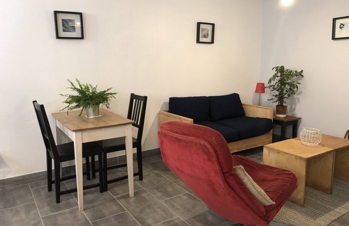 Apartment in a small dead end on the ground floor near all shops and restaurants, 2 minutes from the harbor and the 13 arches bridge of PORTBAIL. Refurbished this year, with independent access, this accommodation is ideally located in the heart of Portbail, with easy access to the port and the beach. Wifi and cleaning included. The apartment next door also belongs to us and can be rented by another couple of friends, which allows us to keep our independence while being together.