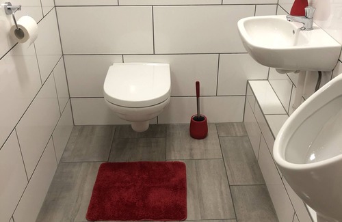 Gästehaus AlbTraum, an old farmhouse completely renovated in 2019 with two apartments and three guest rooms, welcomes its guests in the heart of the Swabian Alb. The apartment on the ground floor (96sqm) has two bedrooms with double beds, flat screen TV, desk, fully equipped kitchen and large living / dining area with additional flat screen TV, bathroom and extra toilet. On the ground floor there is a laundry room with washing machine, dryer, ironing board and iron, which is accessible from the outside for all parties.