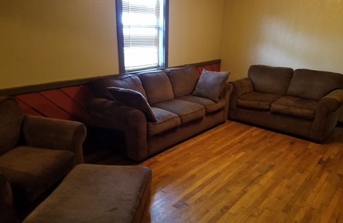 This is a 50's ranch style that has been updated with modern touches. It is not the most elegant house available and we take that in consideration when pricing it. There is a table and chair for 6 people and place settings for 8. A cozy seating area in the living-room around the 50in tv means you can come to town for the game and not have to deal with the crowd! There is a large fenced back yard and a park across the street. Additional park at the end of the block. Walmart is within walking distance and OSU is only 3 miles away.