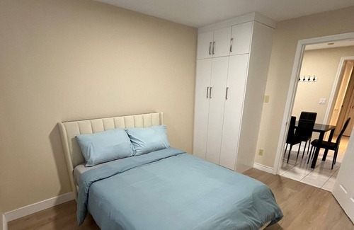 Welcome to our beautiful and modern guest suite. This expansive 3 bedroom suite contains a separate entrance apart from the main house and is found above ground, allowing natural light to bathe the interior. The suite has multiple amenities for usage such as an in suite laundry (washer and dryer), kitchen with essentials provided (basic pans, utensils, coffee machine, etc), and a living room (TV included). This location is very accessible. The suite itself harbors multiple amenities for usage such as an in suite laundry (washer and dryer), kitchen with essentials provided (basic pans, utensils, coffee machine, etc), and a living room (TV included). This location is very accessible and is close to many shopping plazas as well as being walking distance to the Surrey Sport and Leisure complex- Aquatics. By car Fraser Highway is minutes away along with Trans-Canada Highway/BC-1 being less than 3.5 km away as well. Amazing fast food options and restaurants such as Baselines Pub, the Great Indian Cuisine, The Social Tavern, Starbucks, etc are less than 2 km away! Book with us for your next stay and enjoy a comfortable and heartwarming experience!