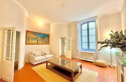 🏛️ Unique stay in a private mansion: Enjoy a charming apartment located in a listed 18th-century building, right in the heart of Nîmes' historic center, on a well-known pedestrian street in the Écusson district.