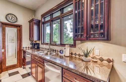 Gourmet Kitchen: Channel your inner chef in our fully equipped gourmet kitchen, featuring granite countertops, SubZero refrigerator and freezer, Wolf 6 burner gas range with oven, 2 dishwashers, and double cooling drawers. The large bar top island with seating for four ensures plenty of space for meal prep and socializing. The large walk-in pantry has a selection of coffees and everything you`ll need for your next culinary adventure