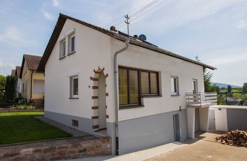 The apartment Haus Sonnenhang is located in a quiet location on the edge of the Black Forest. The apartment is an ideal starting point for your trips to the beautiful region. Our newly renovated 2.5 room attic apartment for 2-4 people offers a living room with dining area and sofa bed, TV and free WiFi. The bedroom is furnished with a French bed (140cm x 200 cm). From the living room you can access the balcony with a fantastic view of Oberweier, the Rhine plain and the French Vosges. We offer our guests the opportunity to use a washing machine on site.