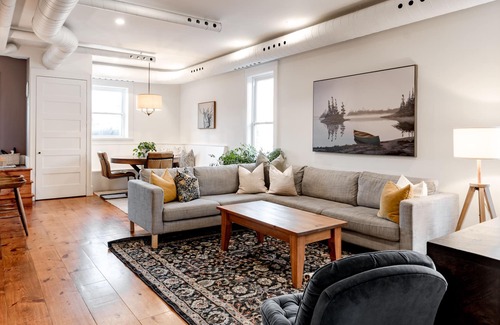 This beautifully decorated and spacious loft is located in heart of downtown Huntsville. You are steps away from dining, shopping and entertainment! When you are done your day of exploring you can enjoy the river views from the back deck. You may even be lucky enough to catch a concert in the town park!