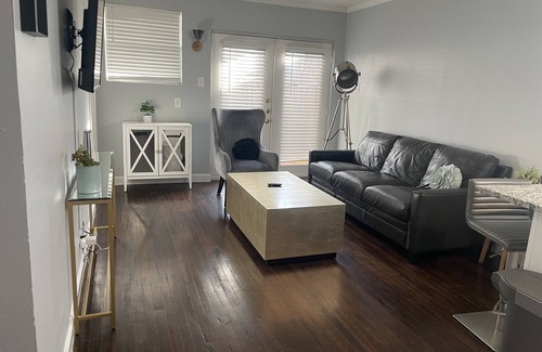 This 500 square foot, 1 bedroom, 1 bathroom, 1st floor apartment is updated with modern touches. Relax in your home away from home with a new king sized memory foam bed, a fully stocked kitchen with walk in closet and private patio.
