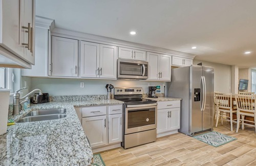 Welcome to The Coral Reef, a freshly renovated coastal escape designed for comfort and convenience. The fully stocked kitchen features stainless steel appliances and plenty of space for cooking and sharing meals together.