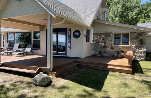 The Here & Now on Mullett Lake is located on 102 ft of frontage on beautiful Mullett Lake. Located just a mile north of Topinabee this cottage offers 3 bedrooms and 2 baths. The spacious cottage offers AC for the hot days and a gas fire place for the colder nights. The cottage comes with a fully stocked kitchen, linens, bath towels, washer/dryer, highchair, pack and play, 2 kayaks, a mooring line, dock for you boat, hammock, abundant outdoor seating and much more. The upstairs is an open concept floor plan with 2 full size beds, 1 queen bed , full bath, and is perfect for a large family or kids retreat. There are two main floor bedrooms, one featuring a king size bed and the other a queen bed, both that offer privacy and comfort. While staying with us drink your coffee from an Adirondack chair while watching the sunrise and end your day on the large patio deck drinking wine under a beautiful Northern Michigan sky. The cottage is close to many great Golf Courses and Restaurants. If you love boating come on up and try the chain of lakes. Here & Now on Mullett Lake is just a short drive to Gaylord, Petoskey, Cheboygan or Mackinaw City and is the perfect location for any up north getaway. Now taking reservations for fall color tours and 2026 season.