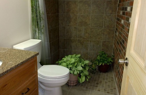 Heron's Landing is a large lower level guest house. This air conditioned unit has a full working kitchen which contains a large refrigerator, microwave, dishwasher, coffee maker, gas stove, all cooking utensils, pots, pans, large single bowl sink, and a dining table in the dining area. Heron's Landing has 3 bedrooms. Two of the bedrooms have sliding glass doors to a covered patio overlooking the Meramec River bottoms. Each bedroom features one luxurious queen size bed. Along with the queen size beds, one of the bedrooms includes a full size foldout futon and one of the other bedrooms has a twin size fold down chaise for additional sleeping options. This large unit includes two bathrooms located off the living room and den areas. The den features a propane fireplace that adds a cozy feel to the property. The living room features a sleeper sofa, and glass patio doors leading out to more of the spacious deck that overlooks the river bottoms where wildlife flourishes. Heron's Landing also has a den that includes two sofas, one being a sleeper sofa, and a satellite TV. In total there are three patios leading off Herons Landing that include a large charcoal BBQ grill, two picnic tables, and other patio furniture to relax in while you breathe the fresh country air and listen to the sounds of nature such as birds singing in the trees. Finally, to complete the unit, there is an over/under apartment washer and dryer for your convenience. Please ask about our handicap accessible areas.